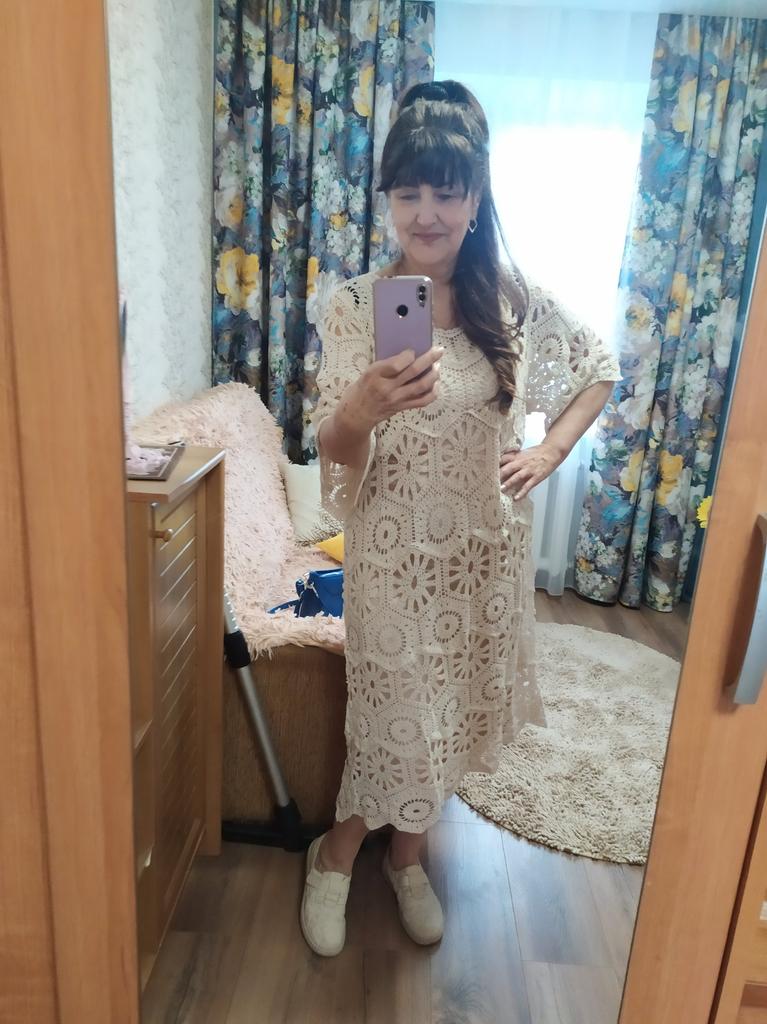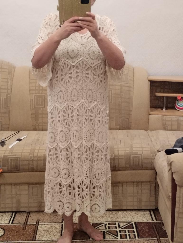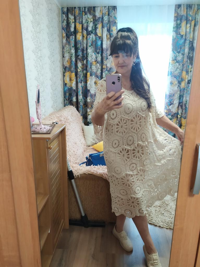 The dress doesn't look like in the photo. But okay. I'll wash it, iron it, it'll do for the beach. I washed it, it stretched out, the length is right. Now I wear it with great pleasure. 👍