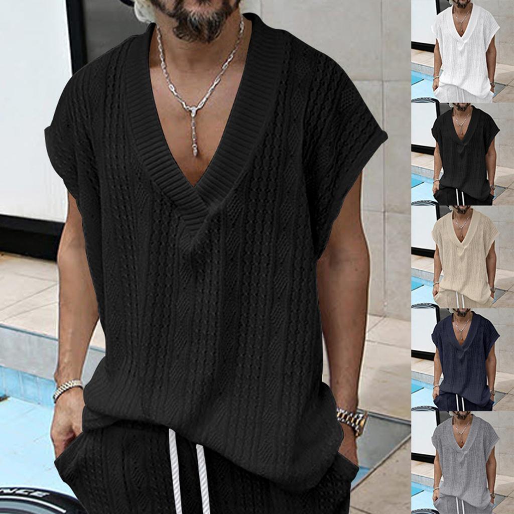 Men's Loose Casual V-Neck Sleeveless Tops Men's Knitted Sleeveless Vest Tops