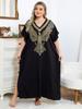 EDOLYNSA Vintage V-neck Gold Eagle Embroidery Plus Size Black Kaftan Robe Women's Long Dress Summer Holiday Beachwear Swimsuit Coverup Q1682