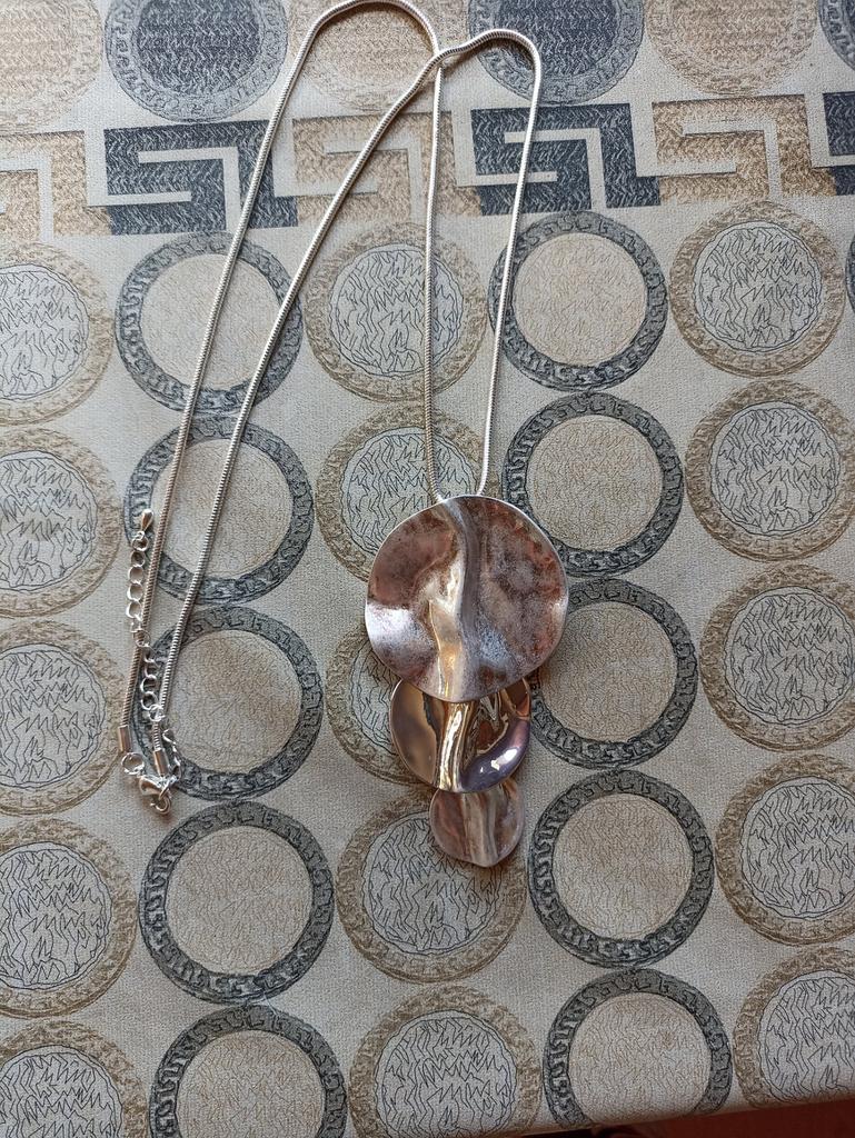 Excellent quality of execution, everything as in the photo, a long metal chain and a large metal pendant, everything matches the photo