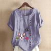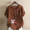 Women's Fashion Round Neck Short Sleeve T-shirt Casual Cotton Linen Graphic Shirt Leisure Loose Cute Dog Flower Prined Summer Blouse Tops Plus Size