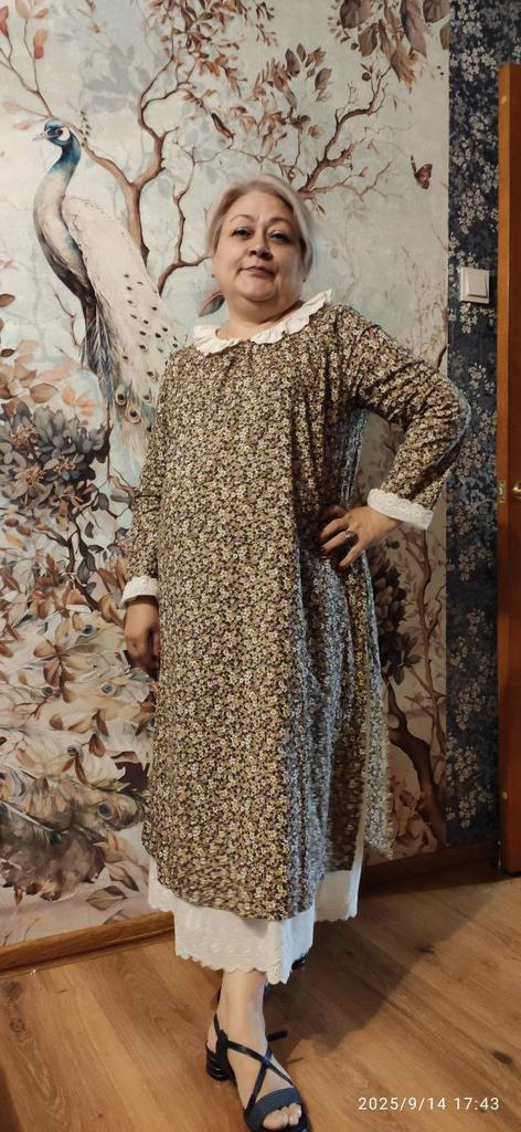 I wear 48, but bought 50, loose. The fabric is summer thin cotton, light, the dress is comfortable, looks great! Ordered on 17.02, received on 7.03. The quality is excellent! Completely satisfied