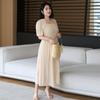 Plus Size Women's Summer Square Neck Simple Split Slim Medium Long Dress