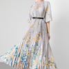 Summer Women Vintage Print Flower Loose Maxi Party Dresses with Belt
