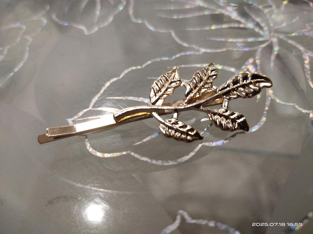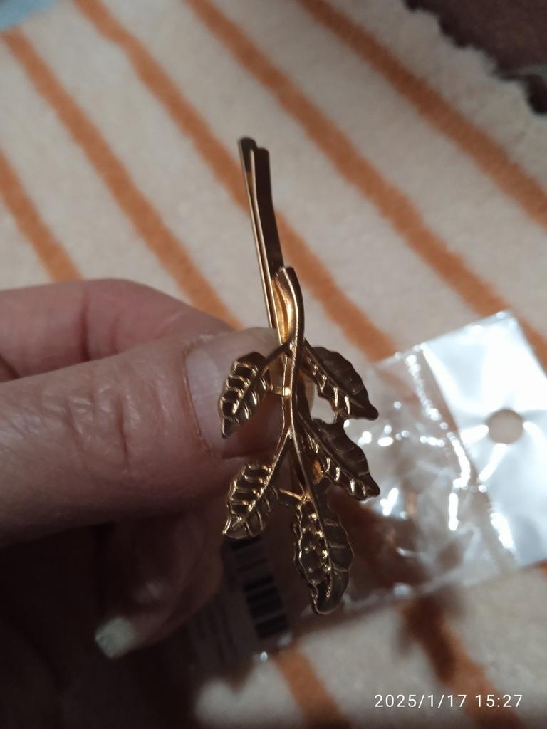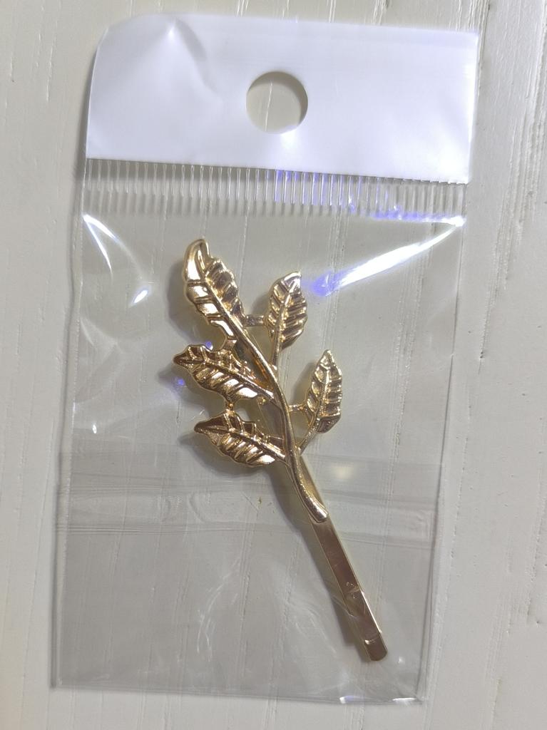 The hairpins are beautiful, they fasten like bobby pins. The color is gold.