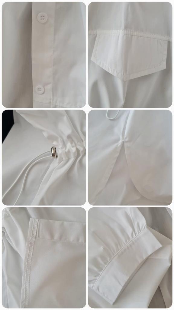 Summer Loose Drawstring Waist Shirt Dress Women's Korean Style Top