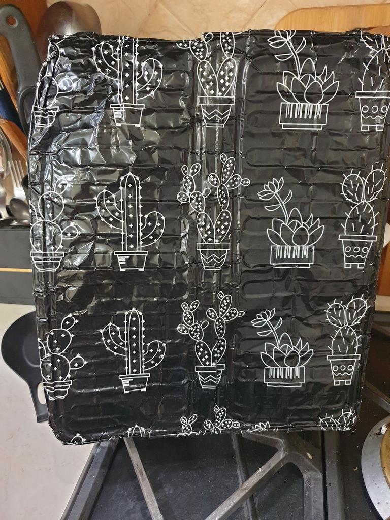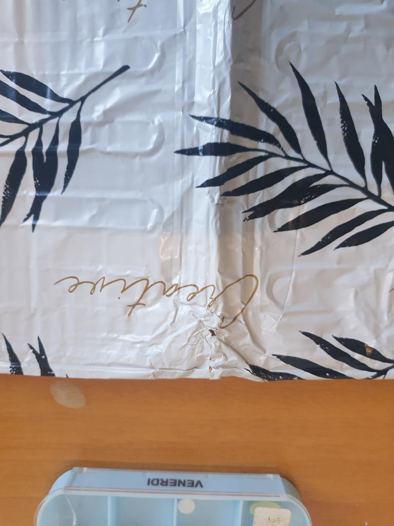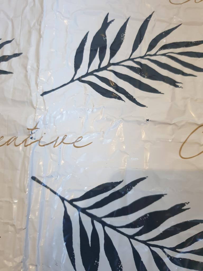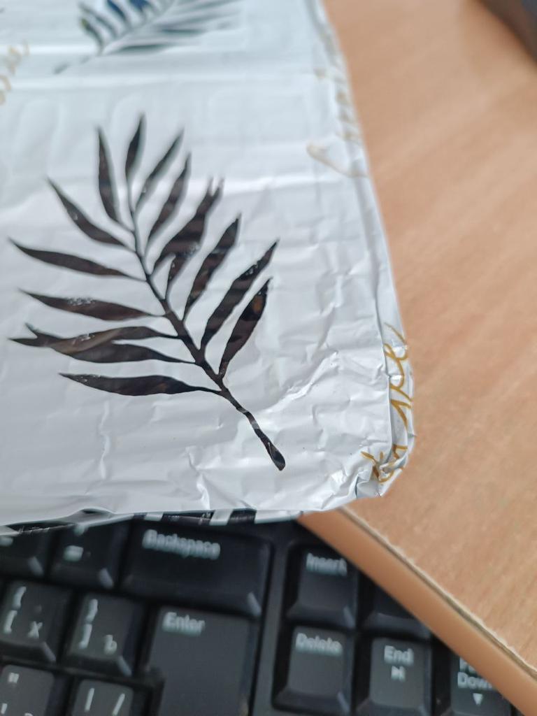 damaged cardboard, poor quality packaging, dented corner.