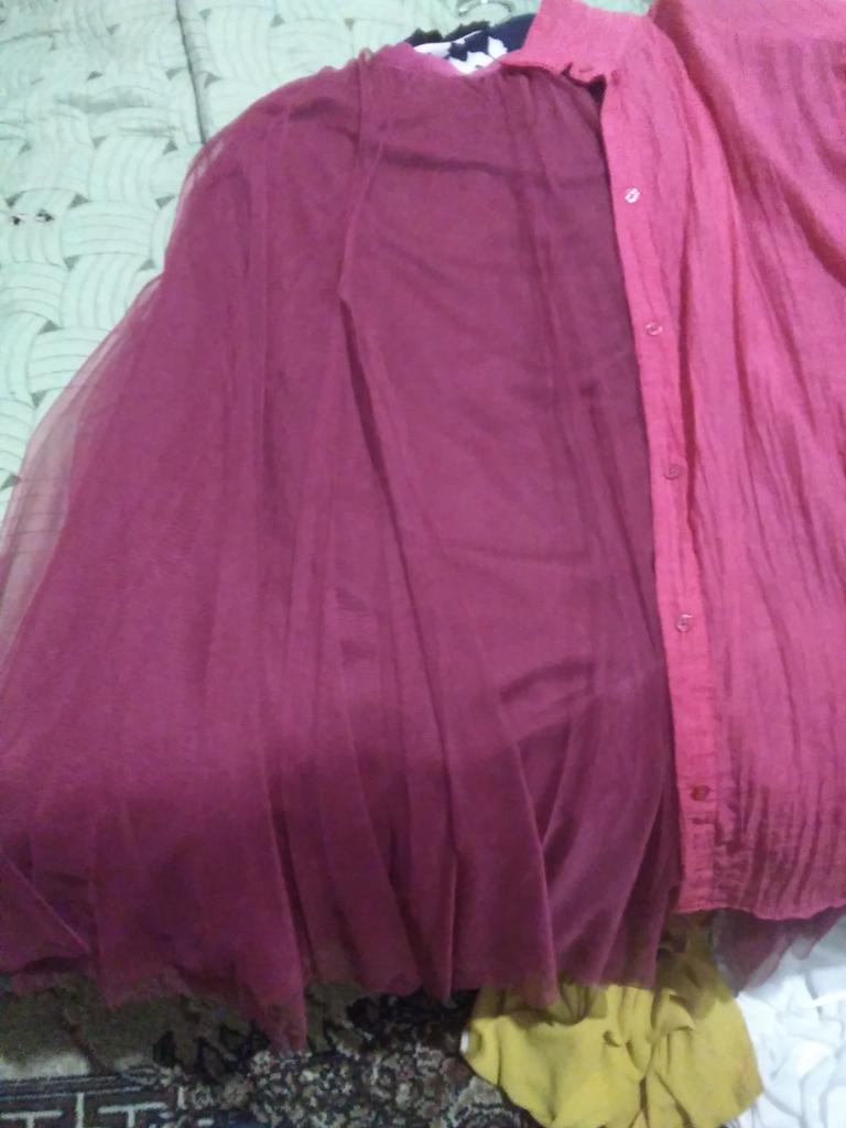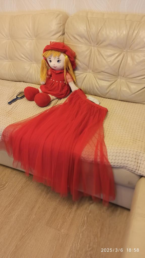 Wonderful beautiful skirt! Sewn from wedges, neatly, 2 layers of mesh, the top one is flared. The color is red as in the photo.