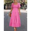 Short Sleeve Square Collar Summer Dress Women Fashion Pleated Elegant Ruffled Long Dresses Women Hight Waist Loose A-line Ladies Dress Clothes 809