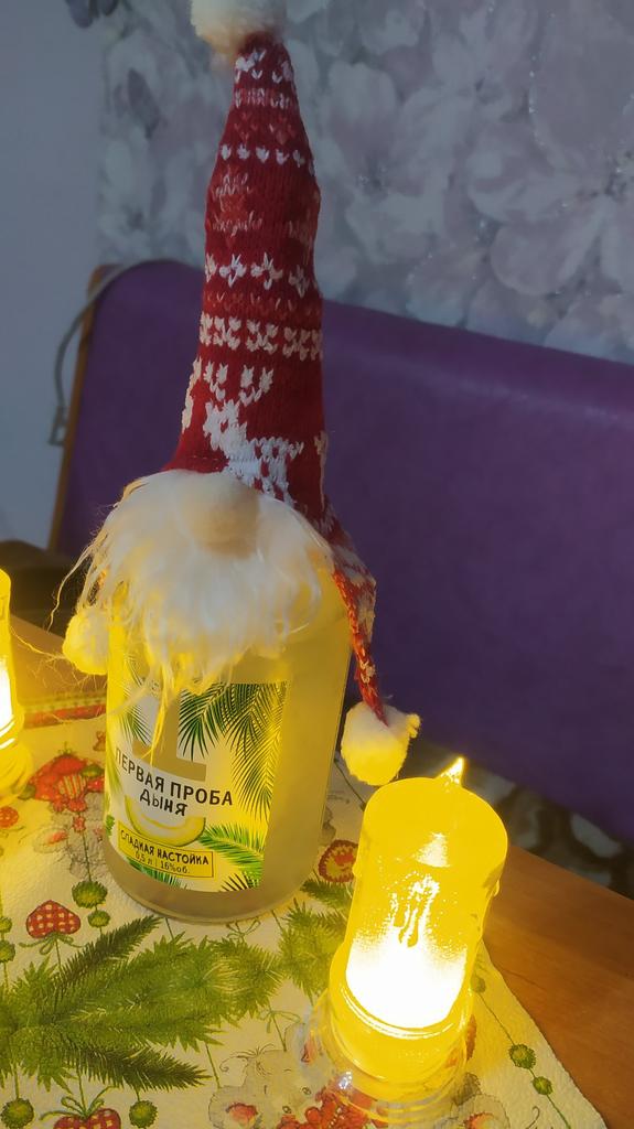 Very cute bottle decoration. Creates a festive mood. Like it!