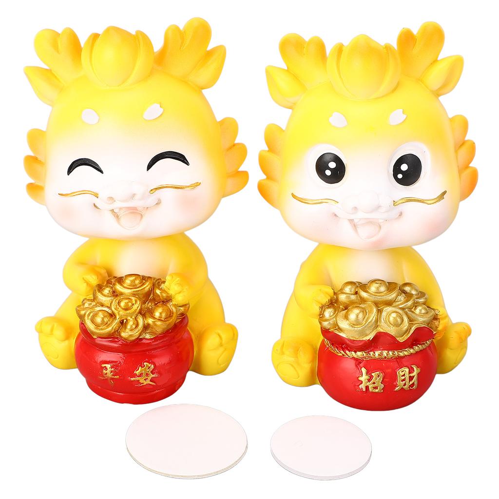 2pcs Zodiac Dragon Ornaments Resin Chinese New Year Dragon Figurines Hand Painting Shaking Dragon St