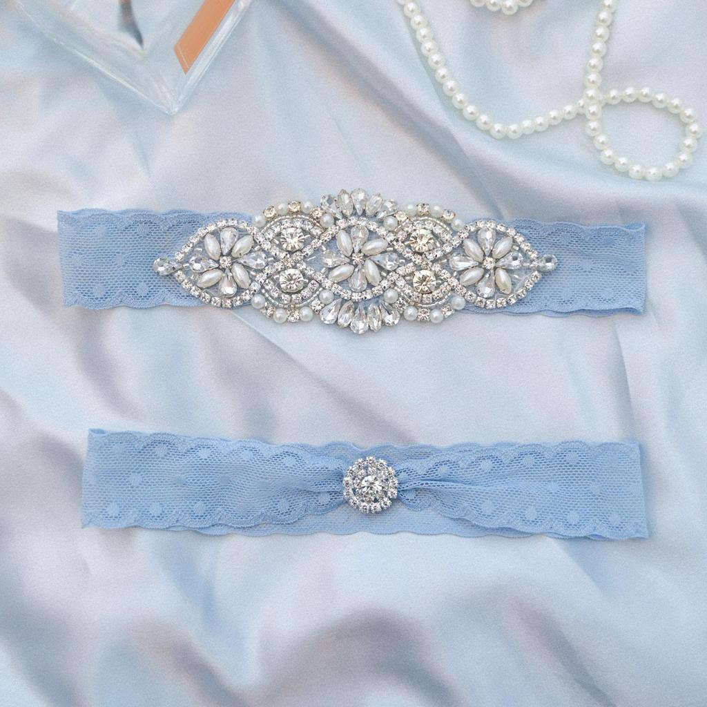 2Pcs Lace Leg Garter Bride Garter Floral Decorative Rhinestone Garter Wedding Bridal Garters for Girls Women Stage Dance Cosplay