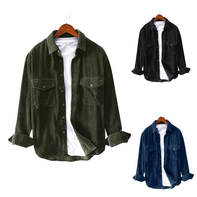 Men's Casual Corduroy Shirt Long Sleeve with Turndown Collar Stylish Top Blouse Plus Size