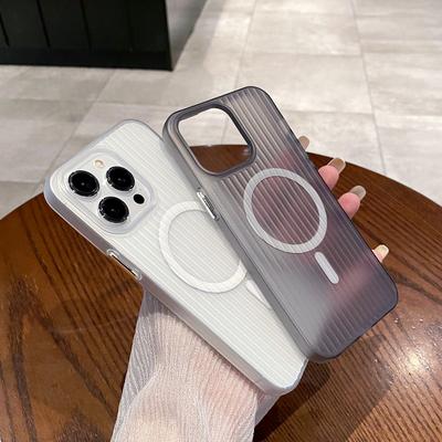 Soft Matte Magsafe Corrugated Phone Case For iPhone 11 12 13 14 15 Pro Max Magnetic Shockproof Transparent Silicone Bumper Cover