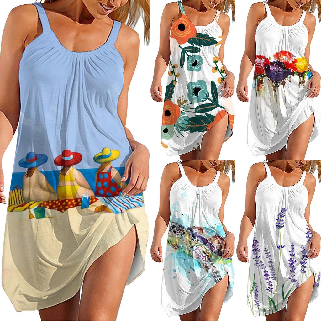 Summer Beach Dresses For Women Printed Strapless Camisole Sleeveless Sling Dress
