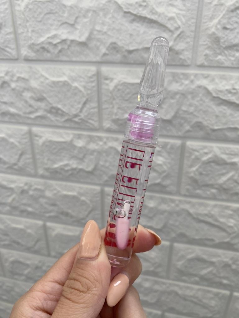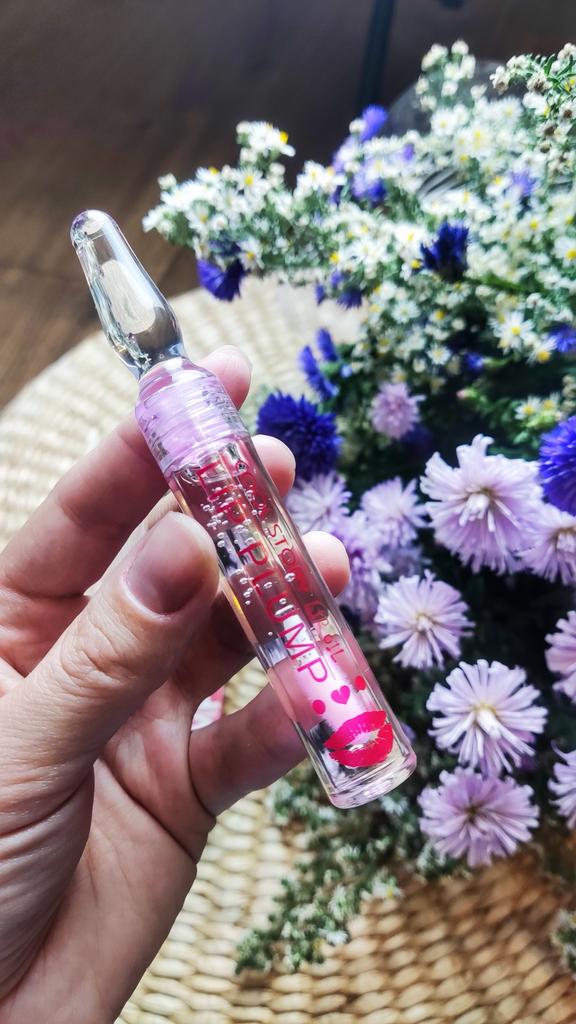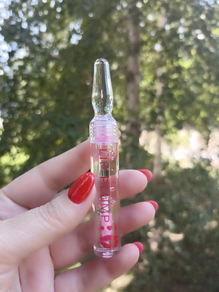 Lip gloss with plumping effect ✨ Ampoule design. Convenient applicator. Colorless. It applies perfectly and does not spread.. After application, you feel a chill and tingling sensation (30-40 seconds). The lips become a little voluminous.. Does not dry.