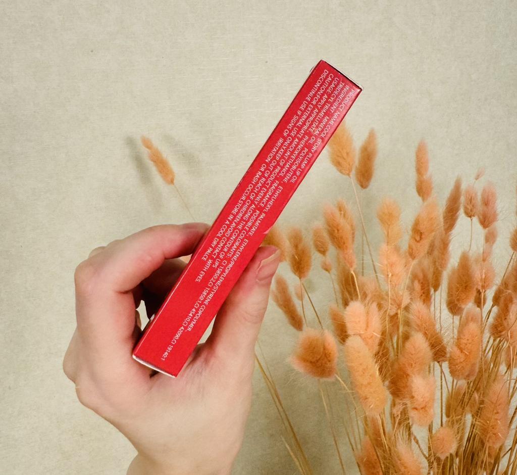 Moisturizing lip oil in ampoule form. Oil with a lip plumping effect, which is due to something very hot in the composition. It is not eucalyptus or pepper, as in some similar glosses, but a chemical component. If you can tolerate a strong burning sensation, your lips will really swell a little. I am not ready to make such sacrifices🙈 Moisturizing occurs due to beeswax and cocoa butter, these components suit me quite well. The gloss-oil is transparent, without sparkles and glitter, the lips look as natural as possible. The "Ampoule" comes in a branded box, on which all the necessary information is indicated in English.