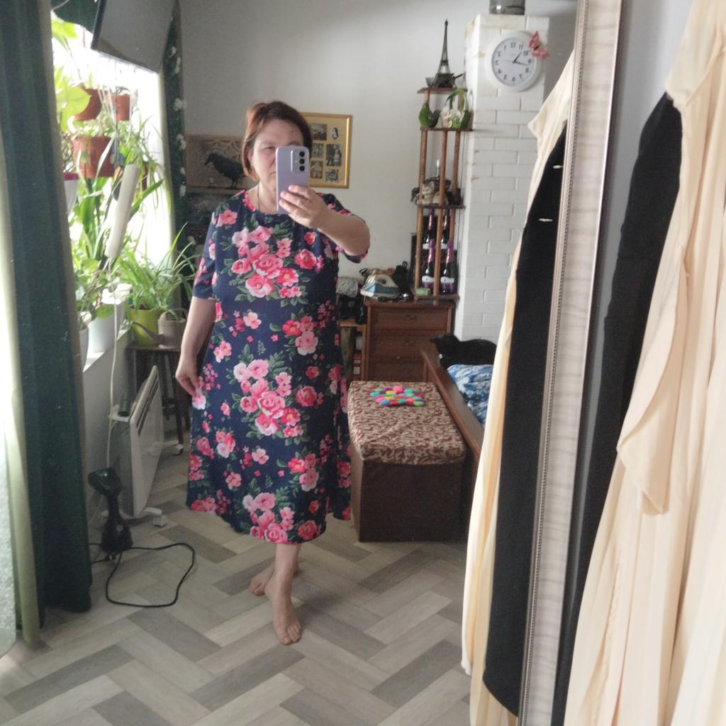 The viscose is pleasant to the body, but it doesn't quite match the description in terms of the product's pattern and neckline cut. It's quite long for my height of 160cm, more suitable for a height of 170-175cm for those with wide hips. Thank you Joom for the fast delivery.
