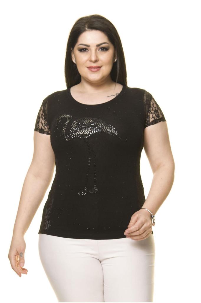 Women's Plus Size Black Stone Embroidered Flamingo Body