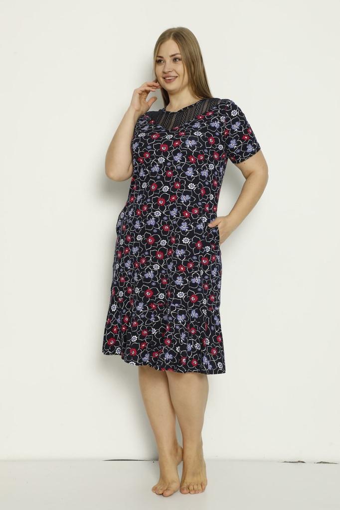 Patterned Pocket Tulle Detailed Combed Cotton Modal Plus Size Dress