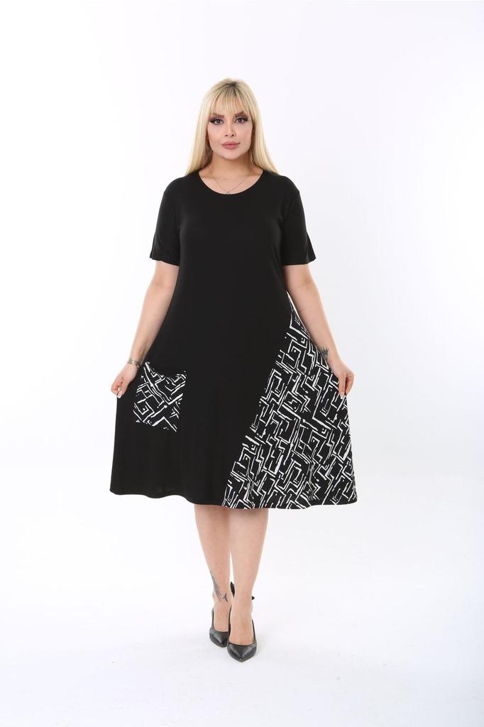 Cross Detailed Single Pocket Knee Length Short Sleeve Midi Length Stylish Summer Combed Cotton Dress
