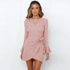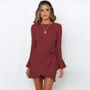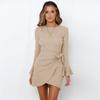 Fashion Women's Casual Ruffled Long Sleeve Slim Bow Elegant Check Dress