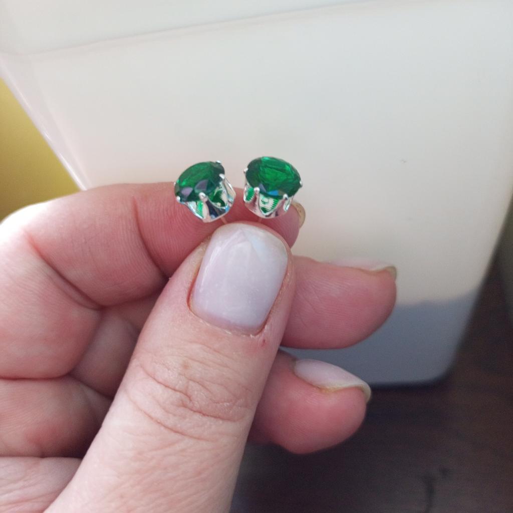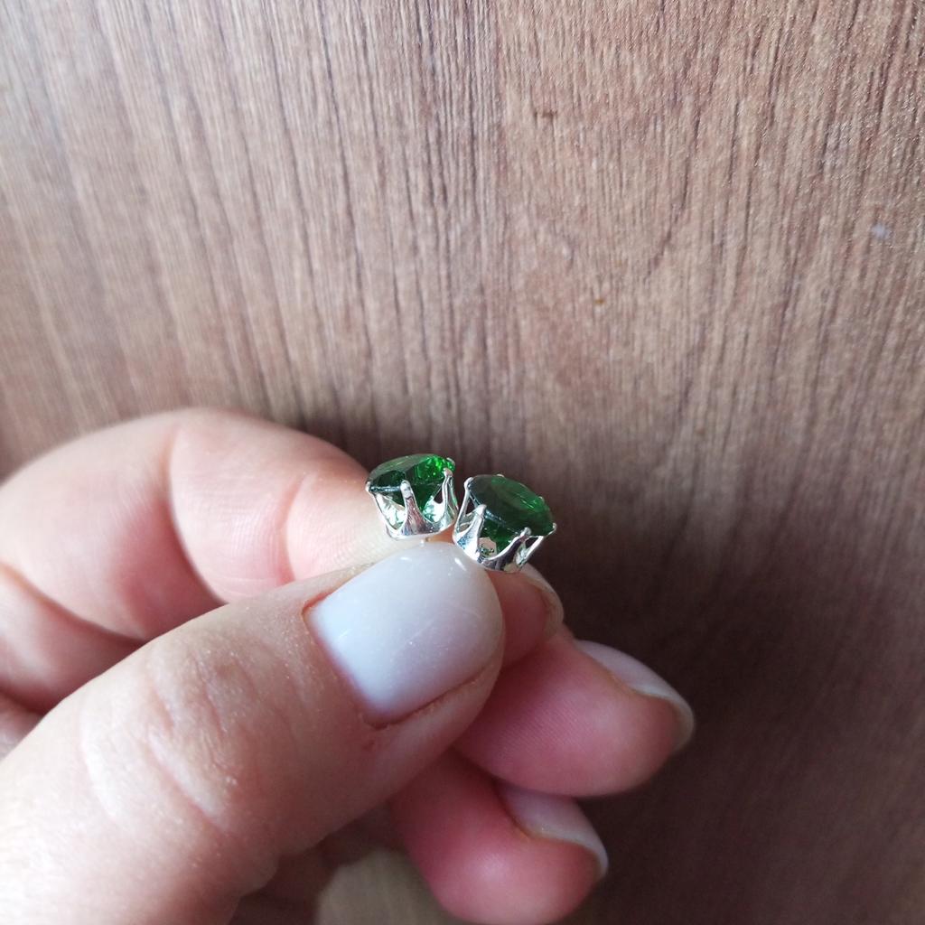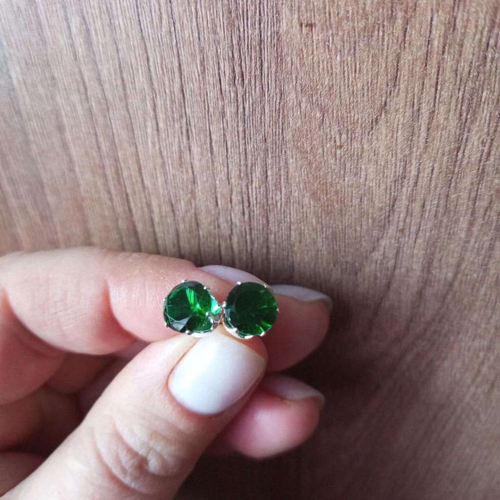 Received the order. The color is green, the stone size is 8 mm. It looks like a beautiful piece of jewelry.