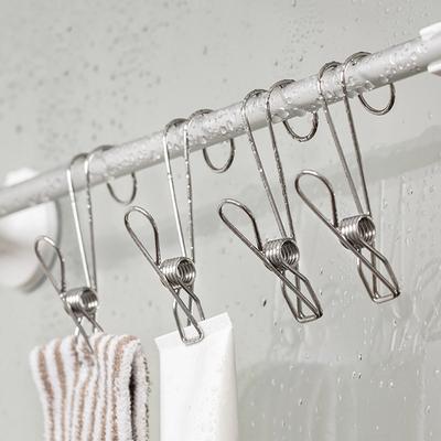 Stainless Steel Hanging Clips with Hooks for Windproof Clothes Drying and Bathroom Organization
