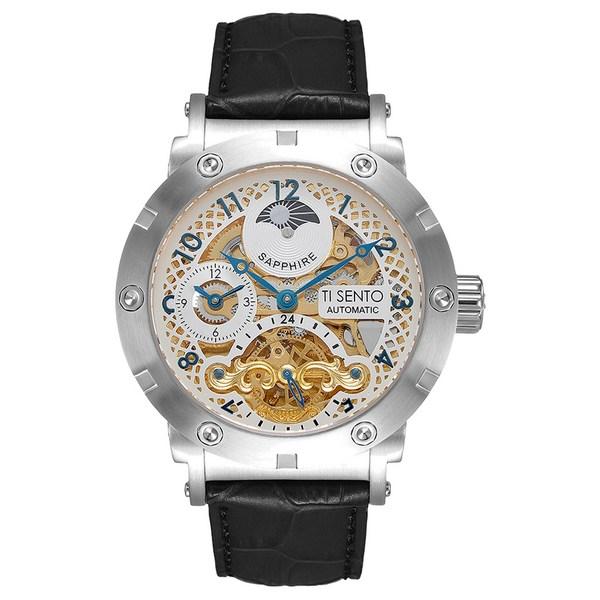 [Ticento]Men's Sun & Moon Automatic Leather Watch TS50051WTBK + Shopping Bag, Korean Luxury Watches