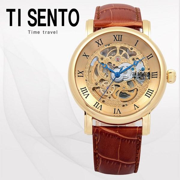 [Ticento]Men’s Automatic Leather Watch TS50061GDBR, Korean Luxury Watches