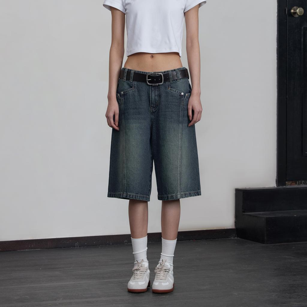 Y2K Vintage Denim Shorts Women High Waist Korean Streetwear Knee Length Jorts Casual Loose Washed Summer Jeans Wide