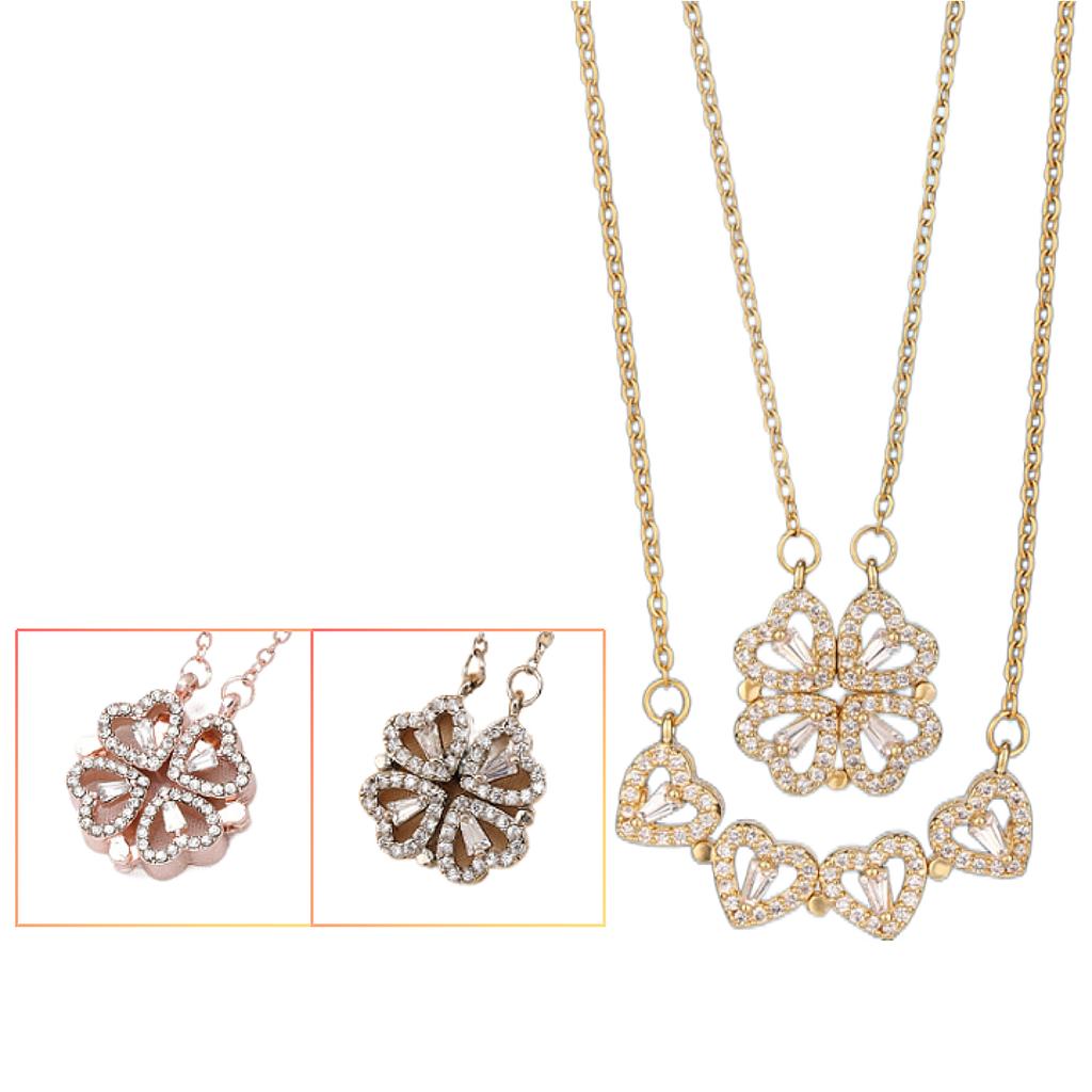 Two-wearing Heart-to-heart Four-leaf Clover Pendant Necklace Female Opening and Closing Folding Creative Clavicle Chain