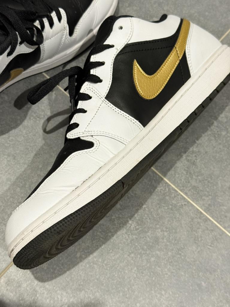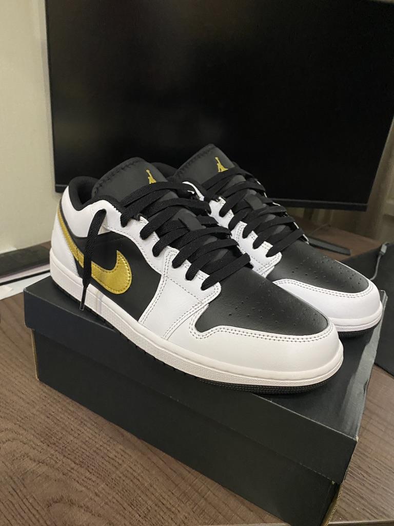 Air Jordan 1 Low Gold Swoosh Men Sneakers White Black Metallic-Gold 553558-172