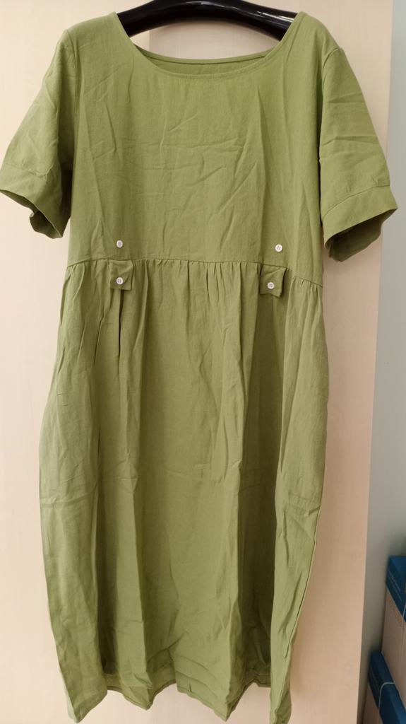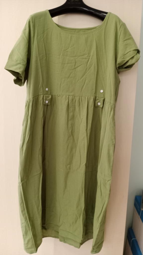 Wonderful dress. L fits 50. Green color - rich olive. Fabric - cotton with a crinkle effect.