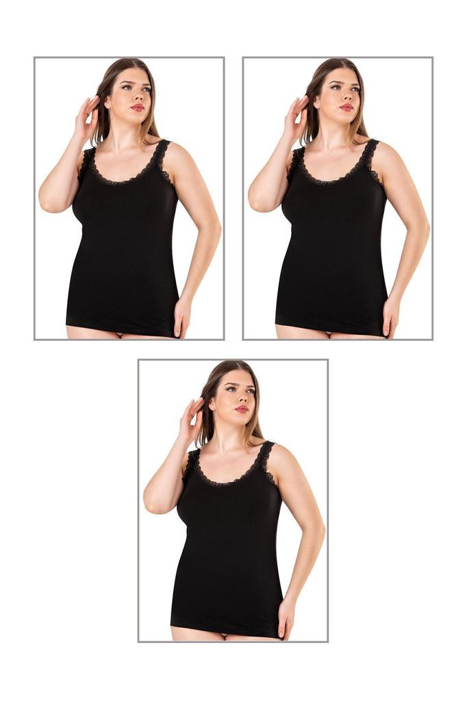 Women's Fashion Big Size Athlete 26802 Pack of 3 Cotton Collar Lace Detailed Thick Strap Flexible Comfortable Large Size Athlete|26802 Pack of 3 Women's Cotton Collar Lace Detailed Thick Strap Flexible Comfortable Large Size Athlete. | Fabric Content: 90% Cotton 10% Elastane. | Athlete Size Description: Corresponds to Size 3Xl46, Size 4Xl48, Size 5Xl50, Size 6Xl52.. | Athlete Full Circumference Chest Width: 3Xl92Cm, 4Xl96Cm, 5Xl100Cm, 6Xl104Cm, 7Xl108Cm.. | Athlete Back Middle Length: 3Xl50Cm, 4Xl51Cm, 5Xl52Cm, 6Xl53Cm, 7Xl54Cm.. | Available in Black and White Color Options.. | It Keeps You Comfortable All Day Long With Its Soft and Flexible Texture.. | It fits your body properly, does not tighten your skin and does not cause any discomfort.. | It Does Not Limit Your Mobility.. | It has an absorbent and breathable feature and a durable structure, and has a long service life.. | The product is a 3-pack.. | A total of 3 products will be sent to you in 1 package for each order.. | You Buy 3 Products for This Price. ||Mold: Large Size | Material:Cotton | Weaving Type:Single Jersey | Silhouette:Relaxed | pattern:Plain | Environment:Day/Night | Collar Type:Lace Collar | Sleeve Length:Strapped | Sleeve Type:Strapped | Fabric Type:Knitted | color:Black | Material Composition:90% Cotton, 10% Elastane | Arm|Size: S, Chest: 84-88cm, Waist: 66-70cm, Hips: 92-96cm | To you: M, Chest: 90-94cm, Waist: 72-76cm, Hips: 98-102cm | To you: L, Chest: 96-100cm, Waist: 78-82cm, Hips: 104-108cm | To you: XL, Chest: 102-106cm, Waist: 84-88cm, Hips: 110-114cm | To you: 2XL, Chest: 108-112cm, Waist: 90-94cm, Hips: 116-120cm | To you: 3XL, Chest: 112-116cm, Waist: 94-98cm, Hips: 122-126cm | To you: 4XL, Chest: 118-122cm, Waist: 100-104cm, Hips: 128-132cm | To you: 5XL, Chest: 124-128cm, Waist: 106-110cm, Hips: 134-138cm | To you: 6XL, Chest: 130-134cm, Waist: 112-116cm, Hips: 140-144cm | To you: 7XL, Chest: 136-140cm, Waist: 118-122cm, Hips: 146-150cm | To you: 8XL, Chest: 142-146cm, Waist: 124-128cm, Hips: 152-156cm | To you: 9XL, Chest: 148-152cm, Waist: 130-134cm, Hips: 158-162cm | To you: 10XL, Chest: 154-158cm, Waist: 136-140cm, Hips: 164-168cm | To you: 11XL, Chest: 160-164cm, Waist: 142-146cm,Hips: 170-174cm | To you: 12XL, Chest: 166-170cm, waist: 148-152cm, Hips: 176-180cm | To you: 13XL, Chest: 172-176cm, waist: 154-158cm, Hips: 182-186cm | To you: 14XL, Chest: 178-182cm, waist: 160-164cm, Hips: 188-192cm | To you: 15XL, Chest: 184-188cm, waist: 166-170cm, Hips: 194-198cm