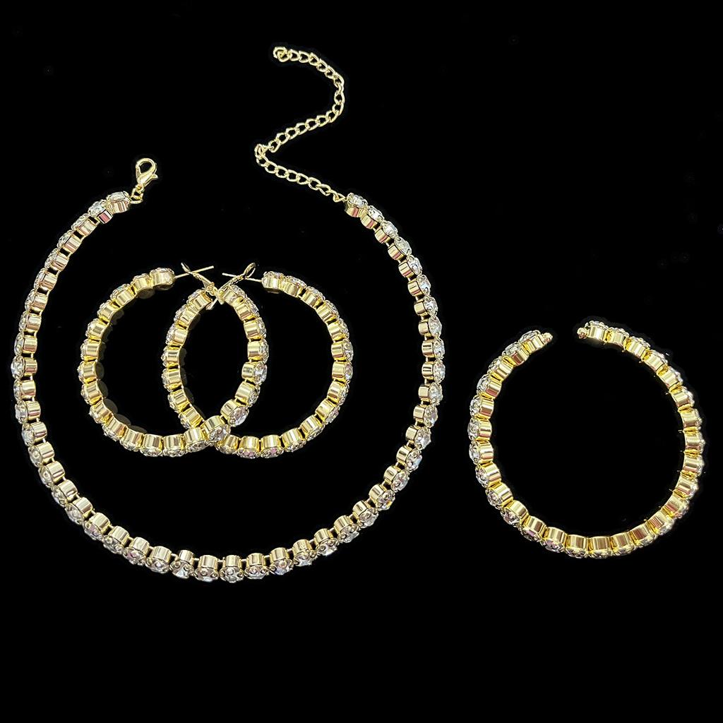 Niche Full Diamond Necklace Earrings Bracelet Three-piece Set Metal Flower Hollow Collar Bridesmaid Bride Suit Women