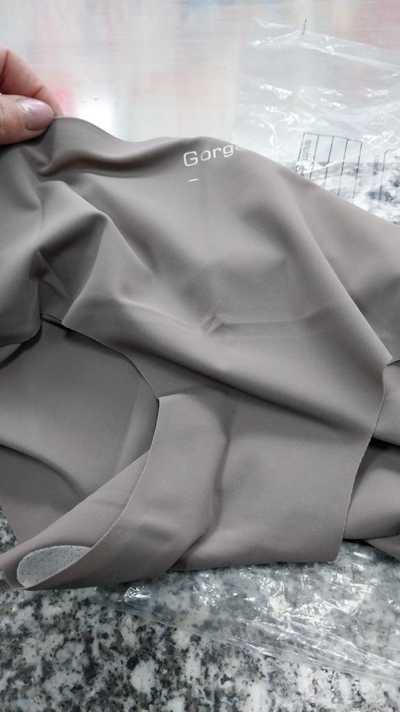 The quality is good. For a volume of 102 cm, size XL is slightly too big.