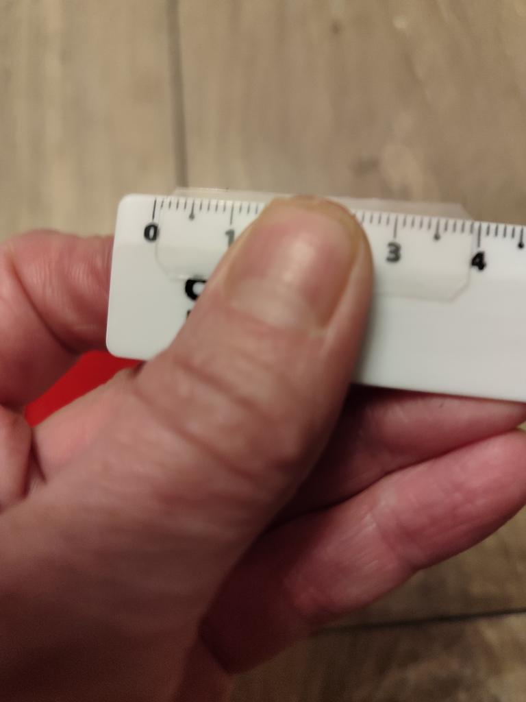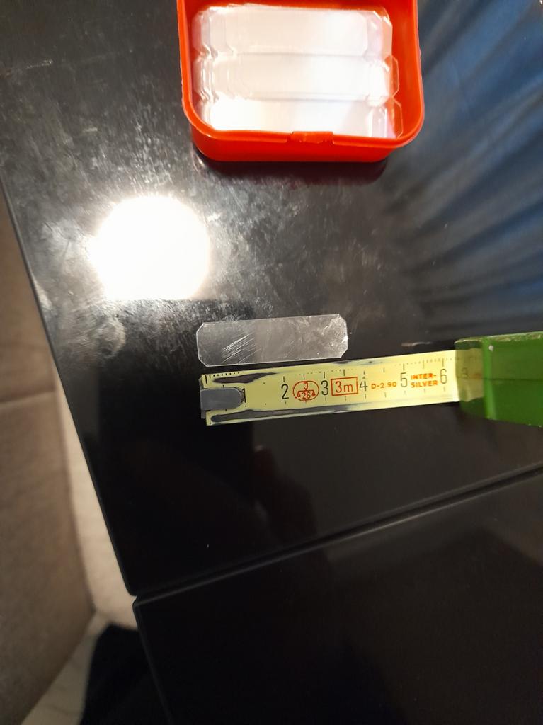Sticks very well. Difficult to remove protective film. Size 4 cm x 1 cm.