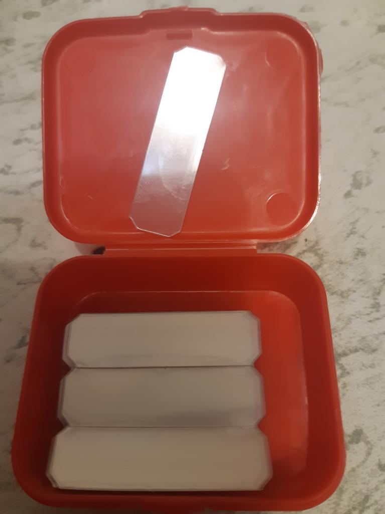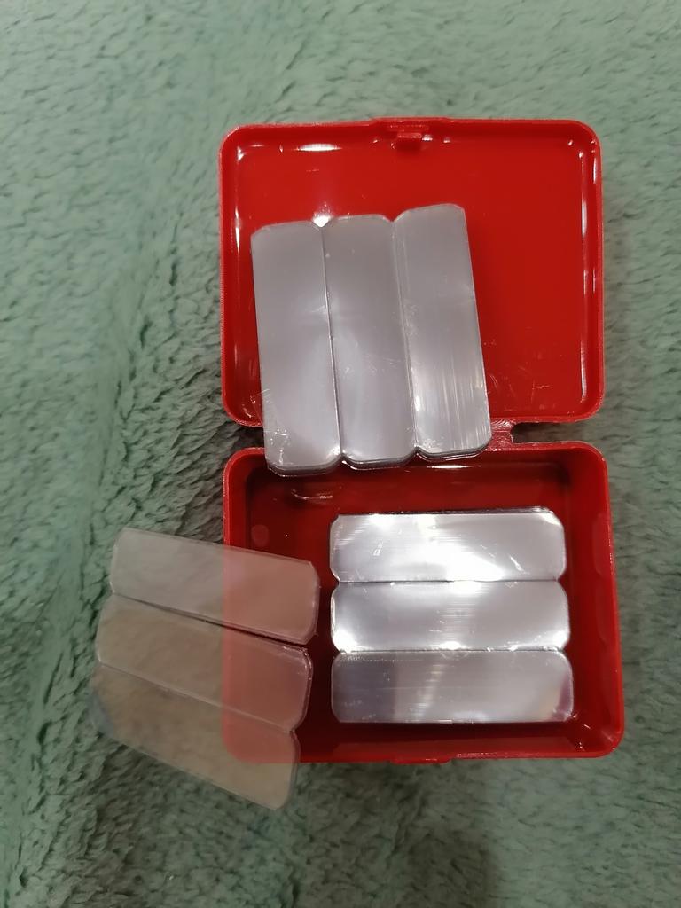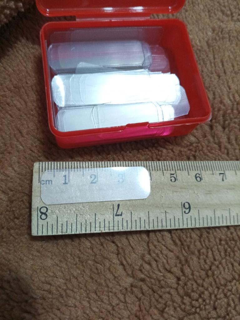 Small 12×38 mm. Taking for the second time. Protective film on both sides. Can be for gluing or to cover the inscription with a transparent strip (then remove the film from one side).