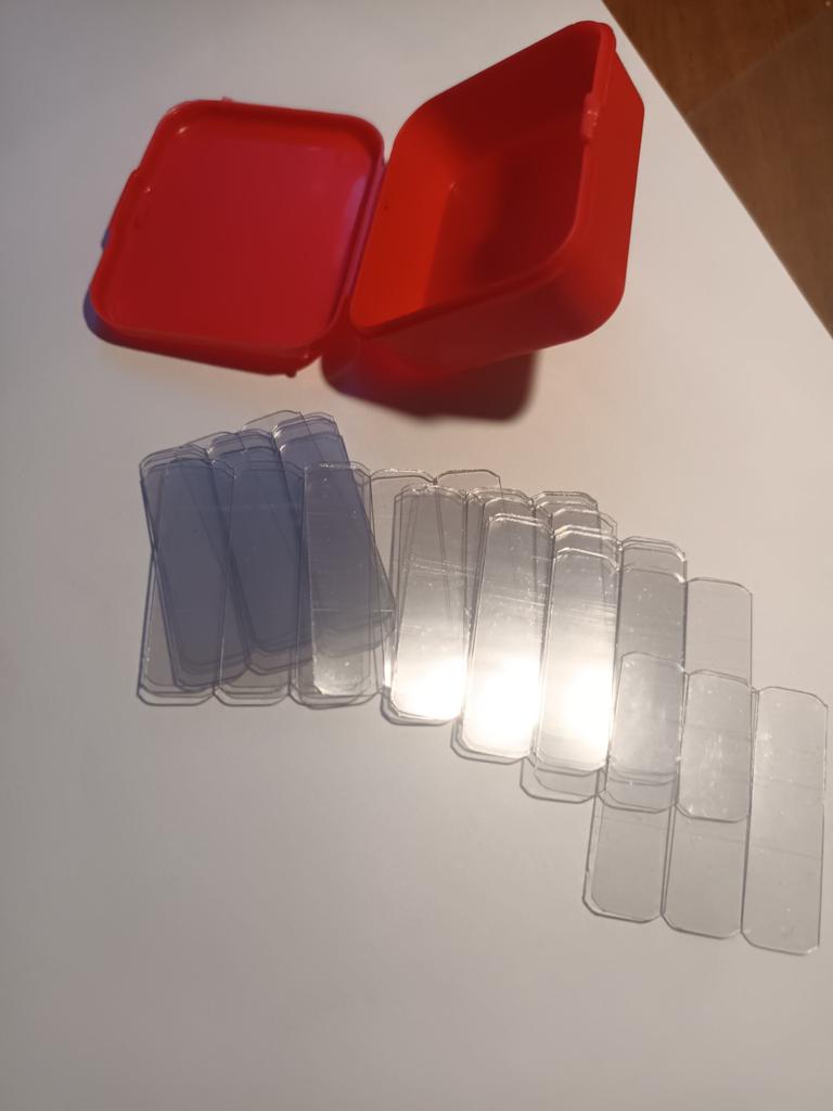 Good, comfortable, not thick, small strips, self-adhesive, double-sided. In a convenient box. Haven't used them yet, but I think they're good
