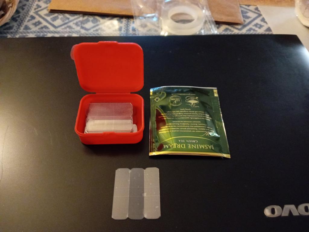 Haven't used it yet, but checked for stickiness. Convenient strips: transparent, small.