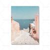 Greece Santorini Poster Print Boho Blush Mediterranean Flowers Canvas Painting Minimalist Modern Wall Art Living Room Home Decor