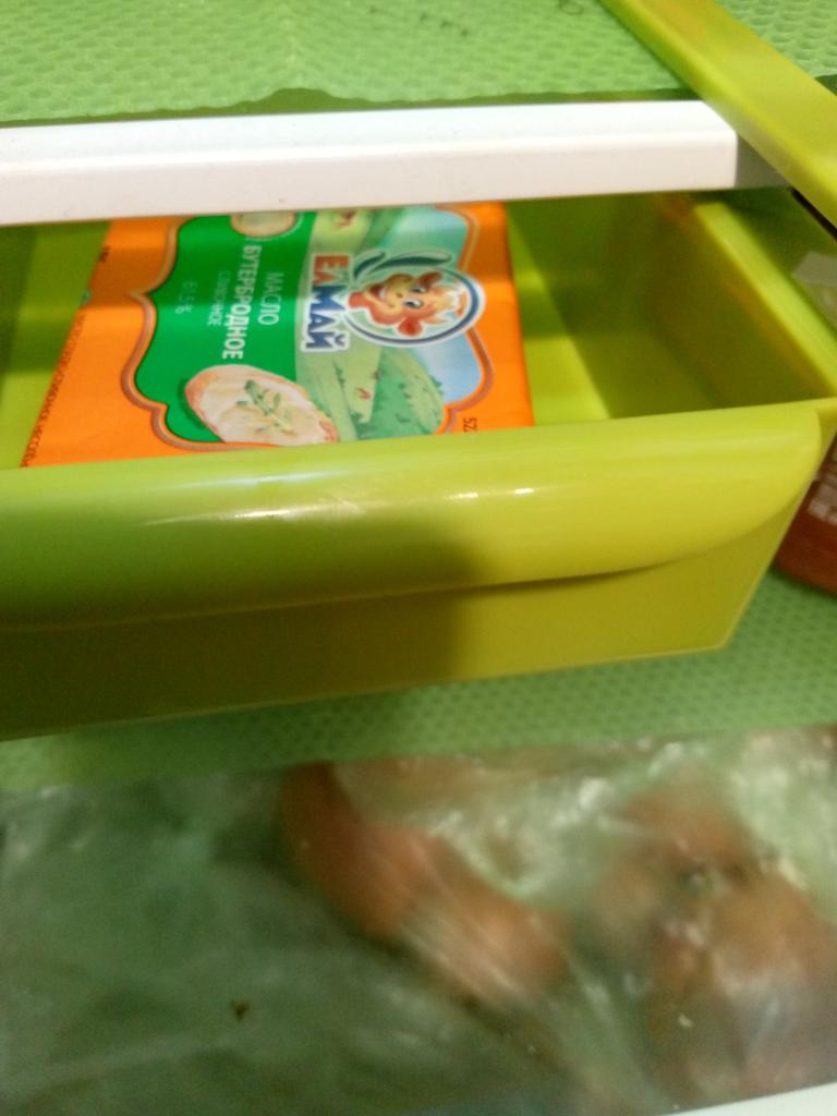 The slide is small but in general it is suitable for small things in the refrigerator. We have already found a use for it.