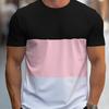 Men's Contrast Color Stripe Pattern Print T-shirt With Crew Neck And Short Sleeve, Casual And Comfy For Summer Leisurewear