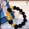 Gold Color Pixiu Bracelet for Men and Women's Wealth Transfer Obsidian Buddha Bead Couple Hand