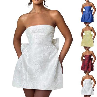 European and American Summer Women's Sweet Slim Fit Jacquard Strapless Bow Mini Dress