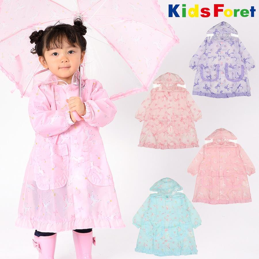 [Children's Clothing] Kids Foret (Kids Foret) Ribbon and Unicorn Pattern Frilled Raincoat SL B81875