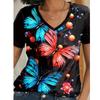 Summer Women's T Shirt Tee 3D Prints Butterfly Graphic Casual Daily Blue Prints Short Sleeve Fashion V Neck Regular Fit Tops