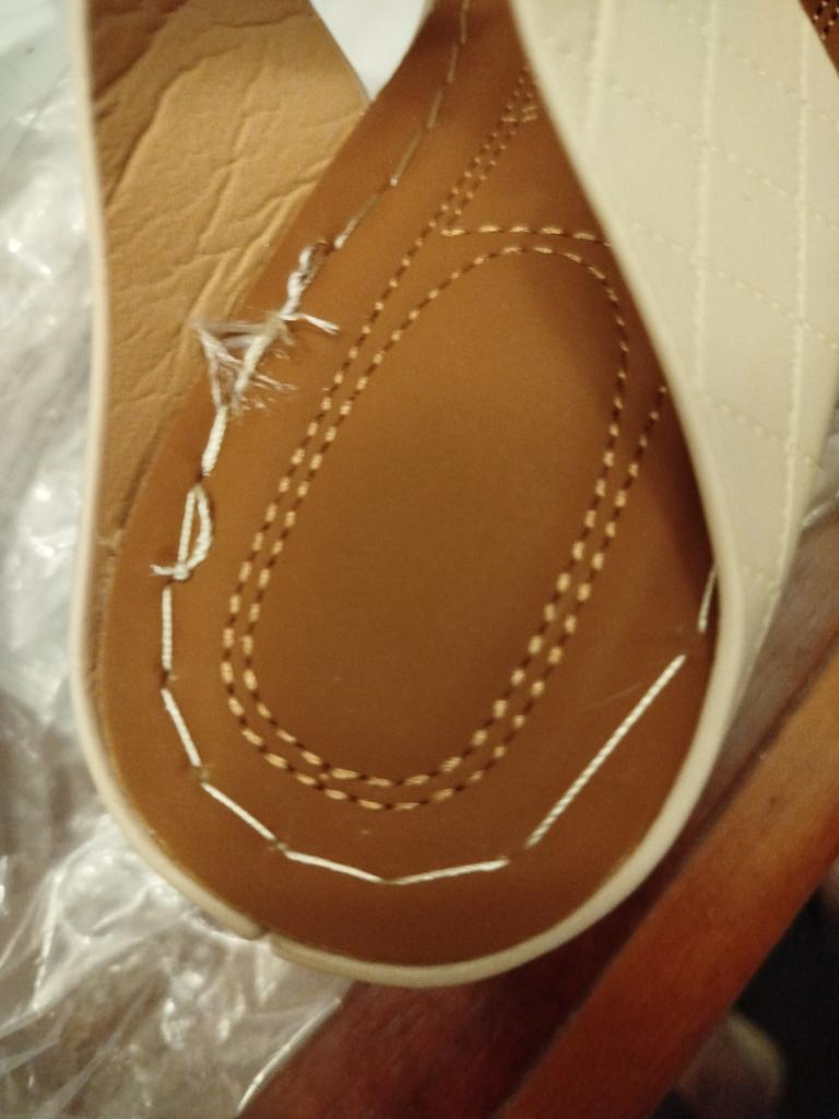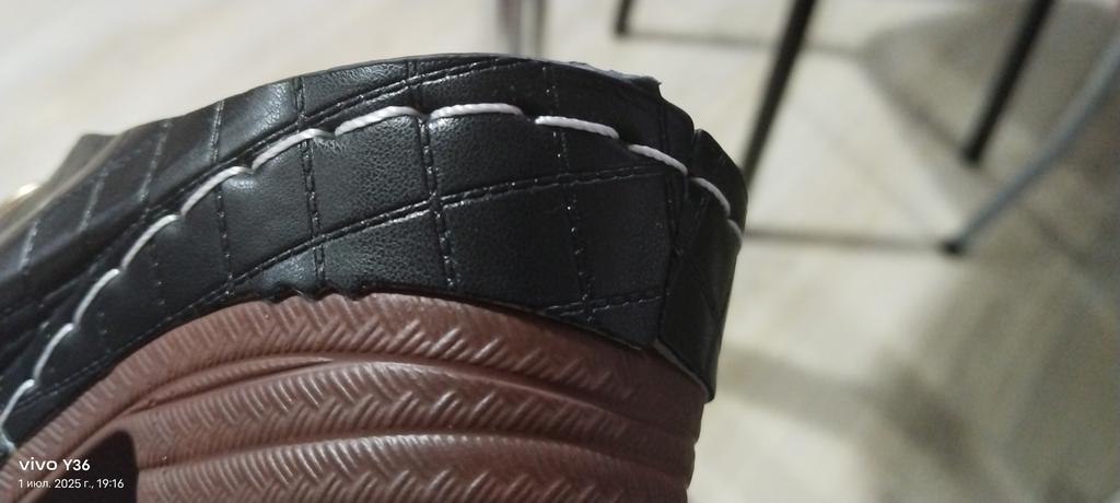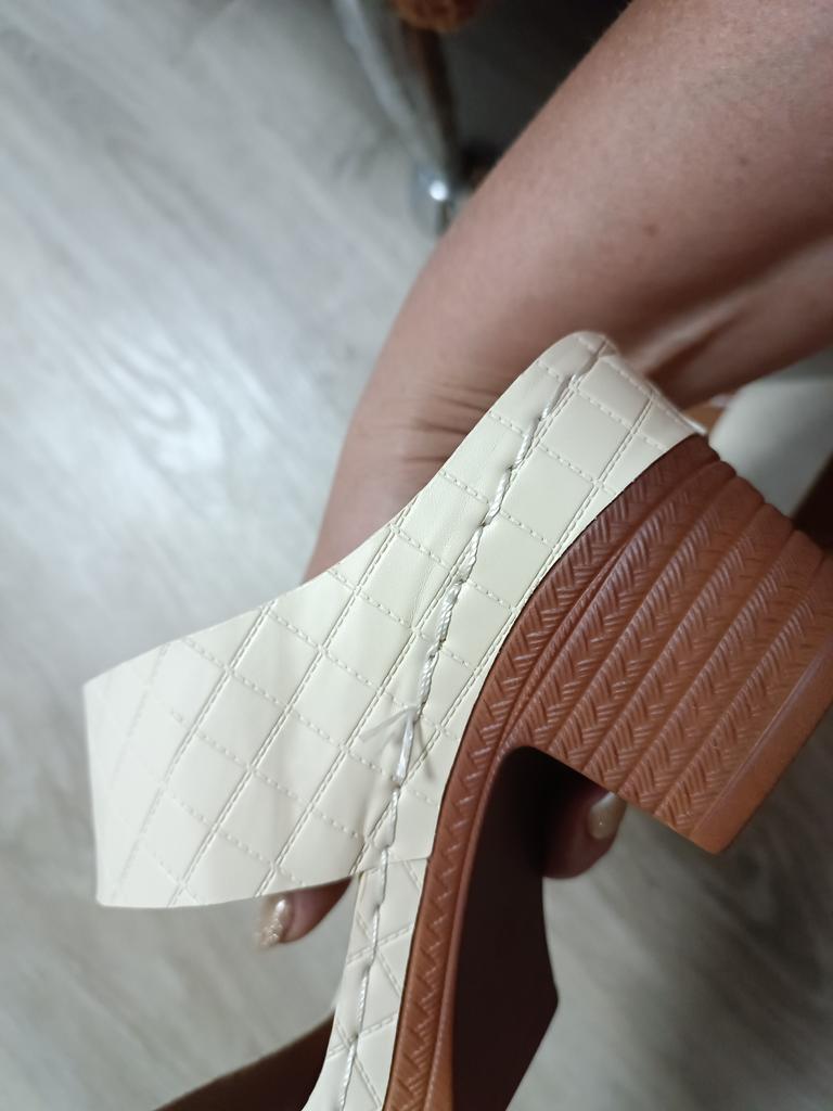 Sandals of poor quality. The stitching of the eco-leather is uneven. The heels are soft, they dent when you walk.