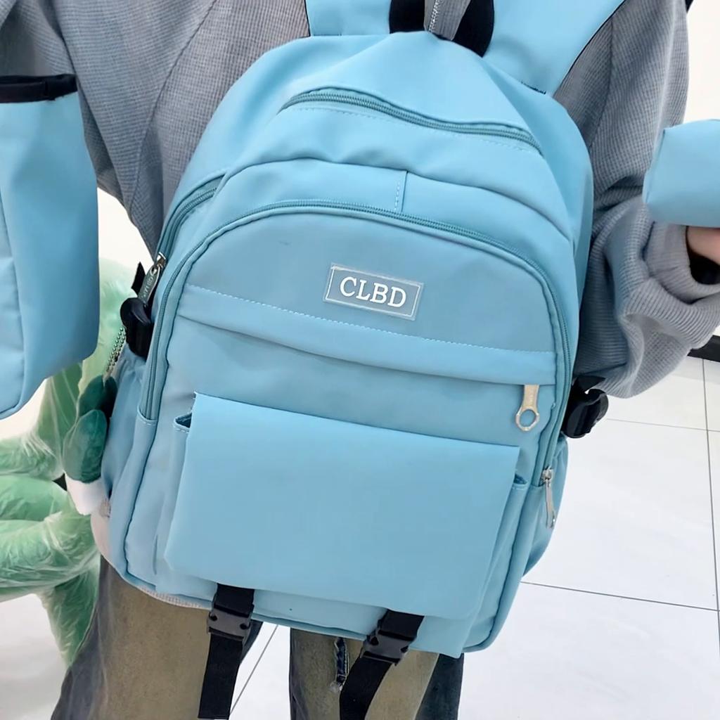 Three-Piece Backpack Set Student Schoolbag Girls Solid Colorlarge Capacity Backpack with Shoulder Bag Pen Bag
